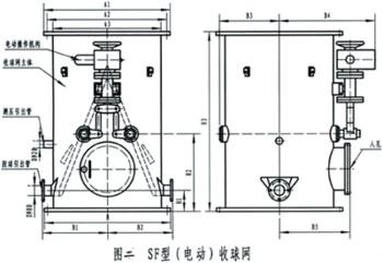 分匯器是一個(gè)三通(管)閥。通過其中導(dǎo)向板的切換可使膠球進(jìn)入需要清洗的一側(cè)凝汽器中。也可作為收球網(wǎng)膠球引出管的匯合和接球管的分流三通管使用。